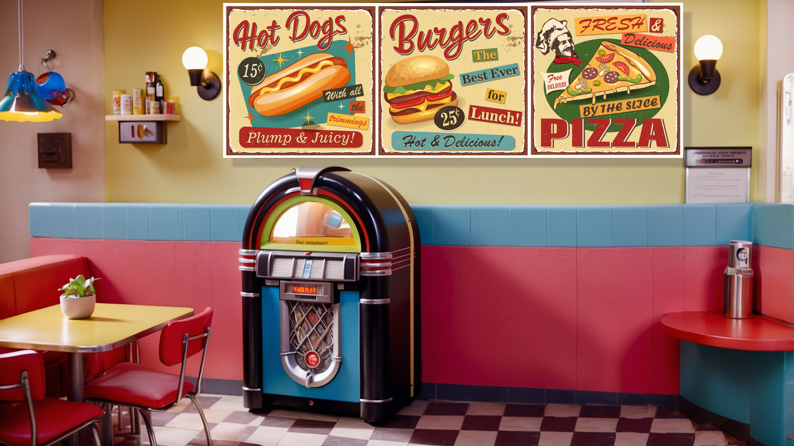 cenário típico dos anos 1950: Jukebox instalada numa lanchonete